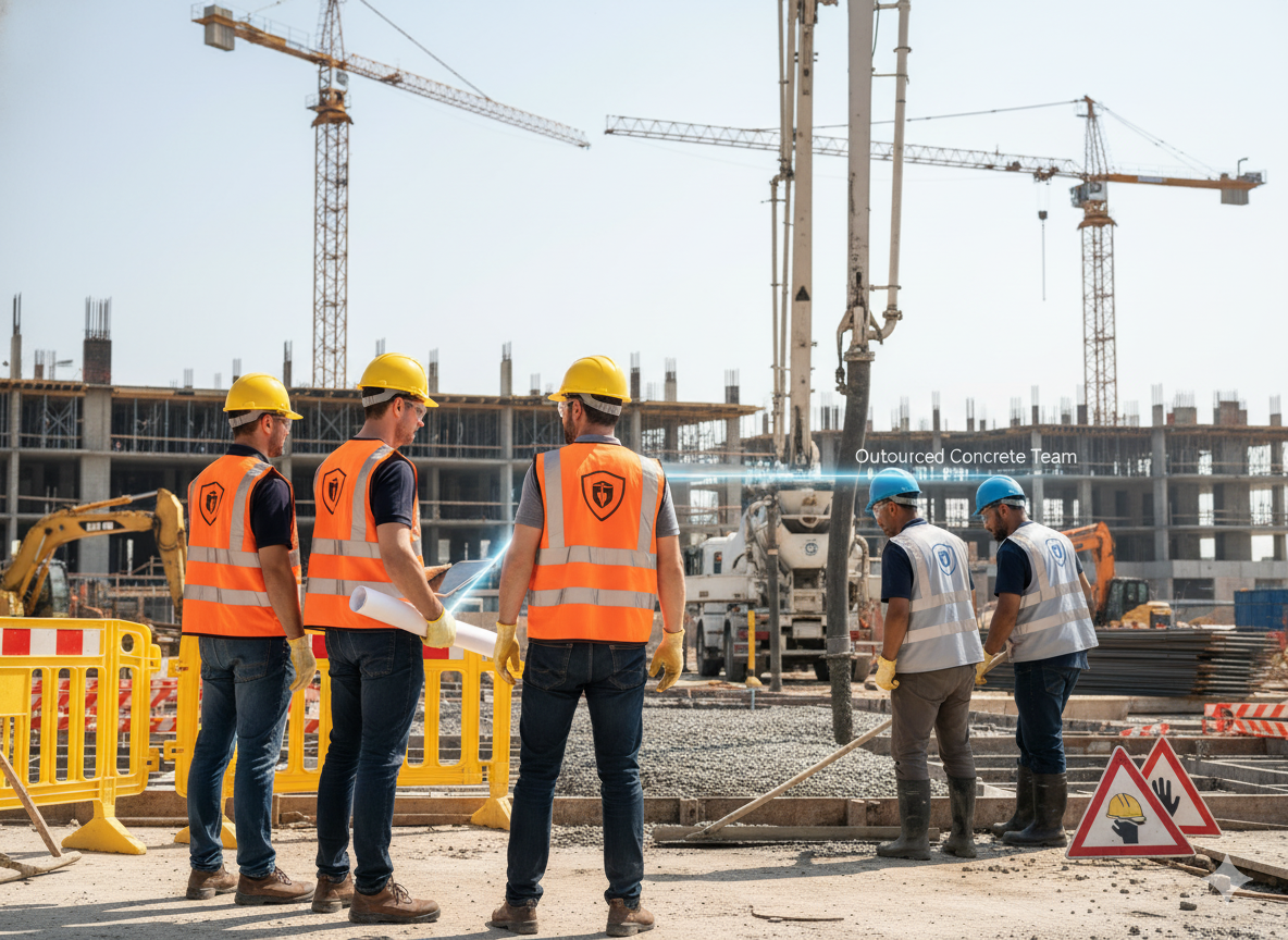 I storskalig europeisk byggnation ger anlitandet av ett erfaret betongarbetsteam genom uthyrning (outsourcing) smidighet och specialiserad expertis. Detta arrangemang överför dock inte det slutgiltiga ansvaret för säkerheten på platsen. För Totalentreprenören (GC - General Contractor) är det icke förhandlingsbart att förstå och rigoröst följa EU:s Byggarbetsplatsdirektiv (92/57/EEG).